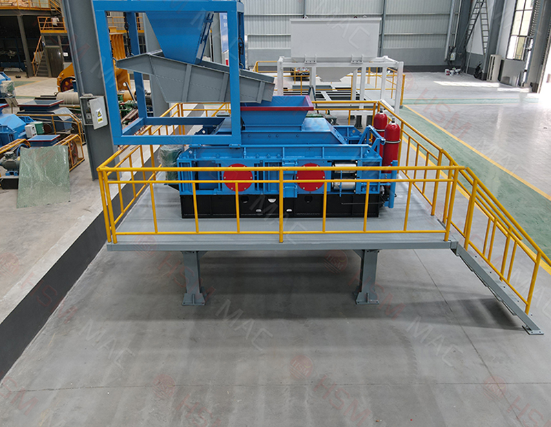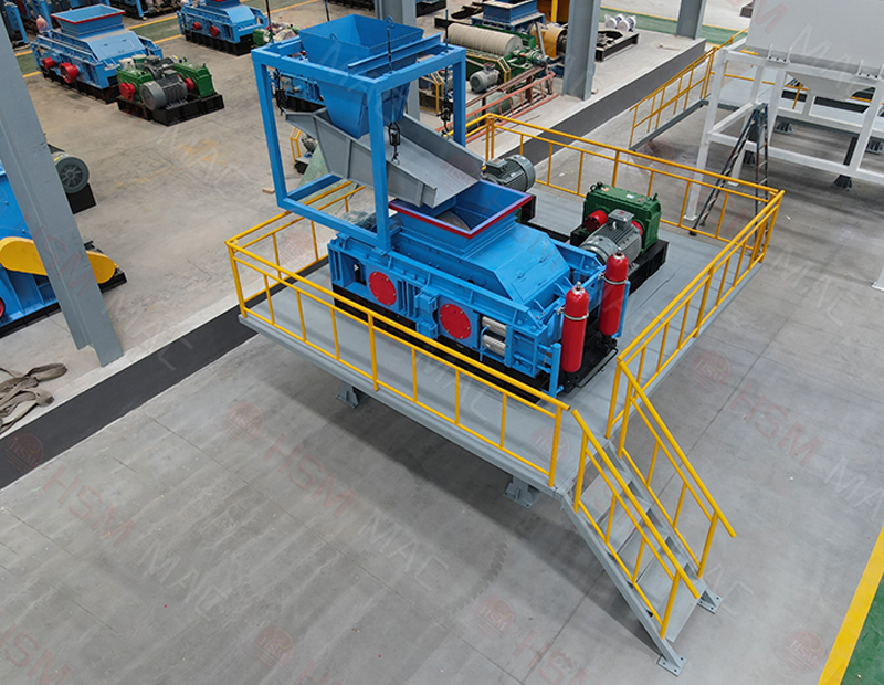 三、出料粒度的调节:两辊小。垫片装置是通过增减垫片的数量或厚薄来调节出料粒度大小的,当增加垫片时两辊轮间隙变大,当减少垫片时两辊轮间隙变小,出料粒度变小。