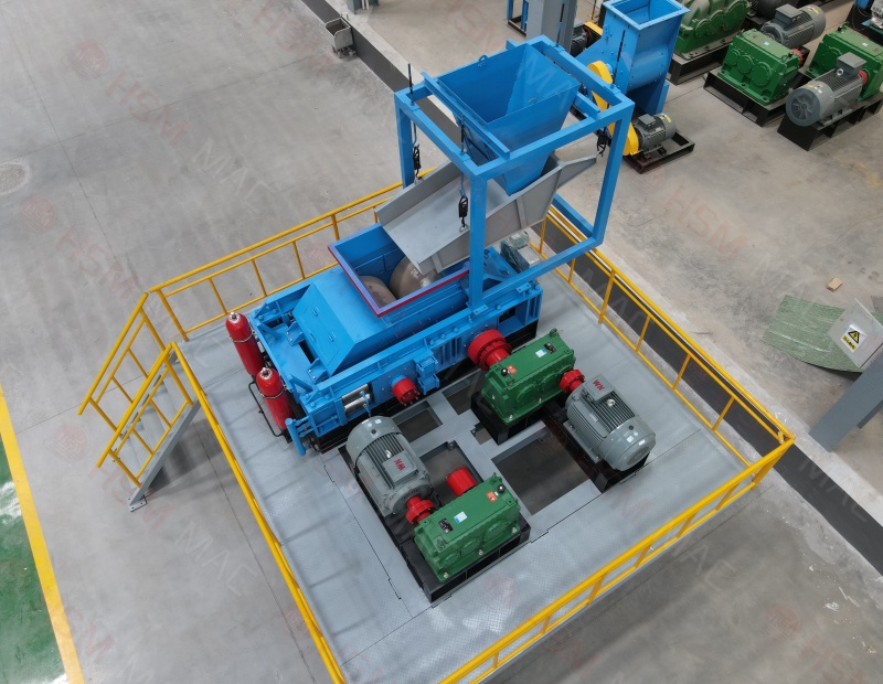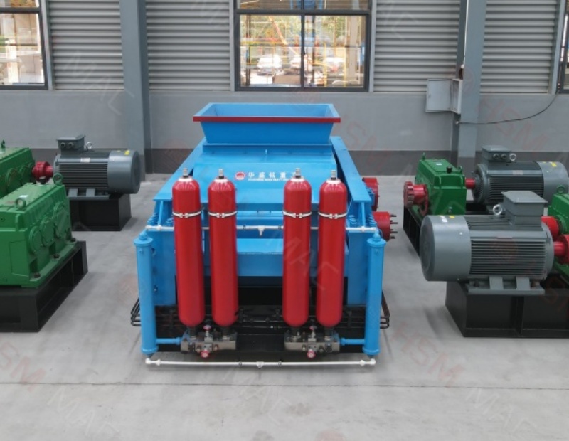 三、出料粒度的调节:两辊小。垫片装置是通过增减垫片的数量或厚薄来调节出料粒度大小的,当增加垫片时两辊轮间隙变大,当减少垫片时两辊轮间隙变小,出料粒度变小。