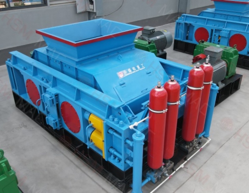 三、出料粒度的调节:两辊小。垫片装置是通过增减垫片的数量或厚薄来调节出料粒度大小的,当增加垫片时两辊轮间隙变大,当减少垫片时两辊轮间隙变小,出料粒度变小。