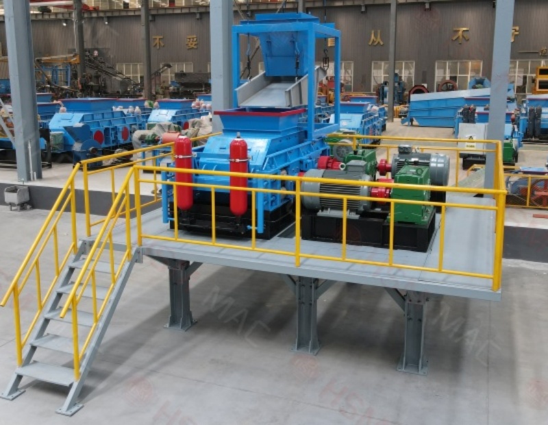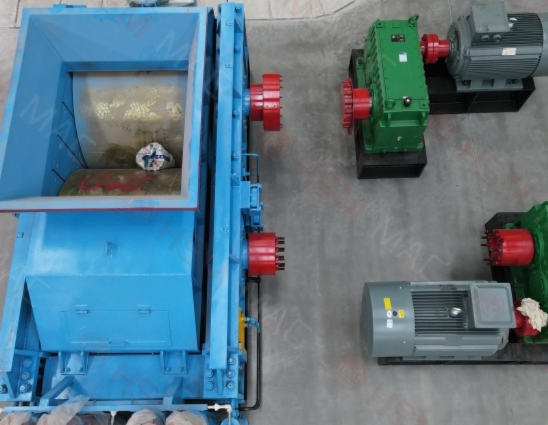 三、出料粒度的调节:两辊小。垫片装置是通过增减垫片的数量或厚薄来调节出料粒度大小的,当增加垫片时两辊轮间隙变大,当减少垫片时两辊轮间隙变小,出料粒度变小。