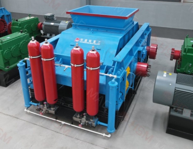 三、出料粒度的调节:两辊小。垫片装置是通过增减垫片的数量或厚薄来调节出料粒度大小的,当增加垫片时两辊轮间隙变大,当减少垫片时两辊轮间隙变小,出料粒度变小。