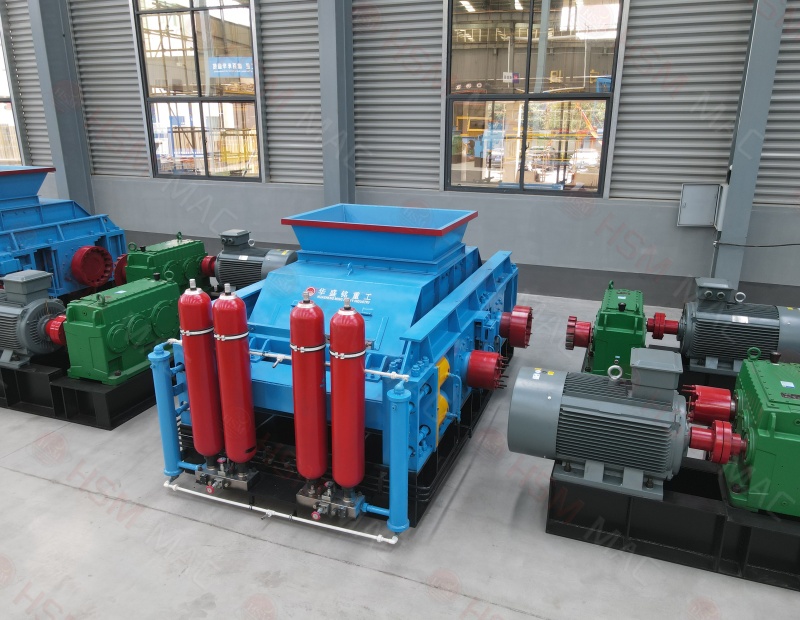 三、出料粒度的调节:两辊小。垫片装置是通过增减垫片的数量或厚薄来调节出料粒度大小的,当增加垫片时两辊轮间隙变大,当减少垫片时两辊轮间隙变小,出料粒度变小。