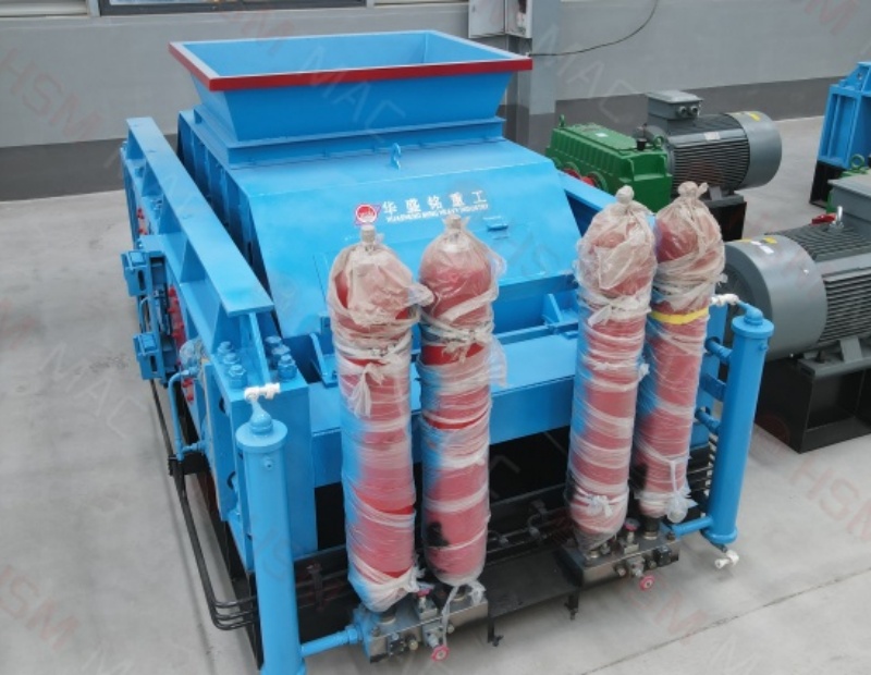 三、出料粒度的调节:两辊小。垫片装置是通过增减垫片的数量或厚薄来调节出料粒度大小的,当增加垫片时两辊轮间隙变大,当减少垫片时两辊轮间隙变小,出料粒度变小。