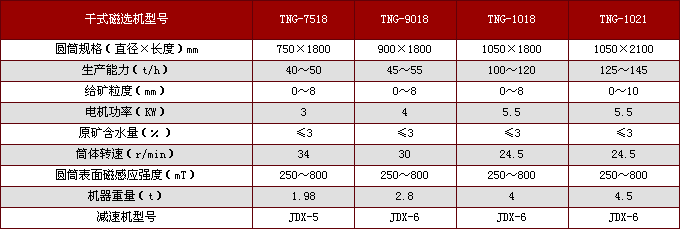 干式磁选机是针对干燥的磁性矿物进行分选的磁力选矿机械,相对于湿式磁选机分选矿物时要使用液体作为稀释剂提高分选效率而言,干式磁选机则要求被分选的矿物干燥,颗粒之间可以自由移动、成独立的自由状态,否则会影响磁选效果,甚至会造成不可分选的后果。干式磁选机适用于粒度3mm以下的磁铁矿、磁黄铁矿、焙烧矿、钛铁矿等物料的湿式磁选,也用于煤、非金属矿、建材等物料的除铁作业。